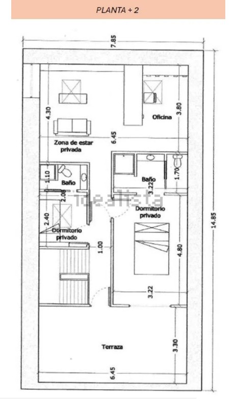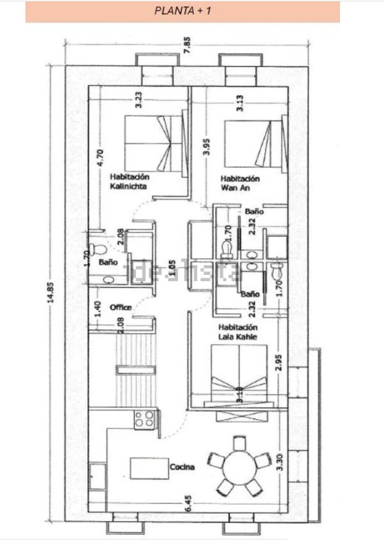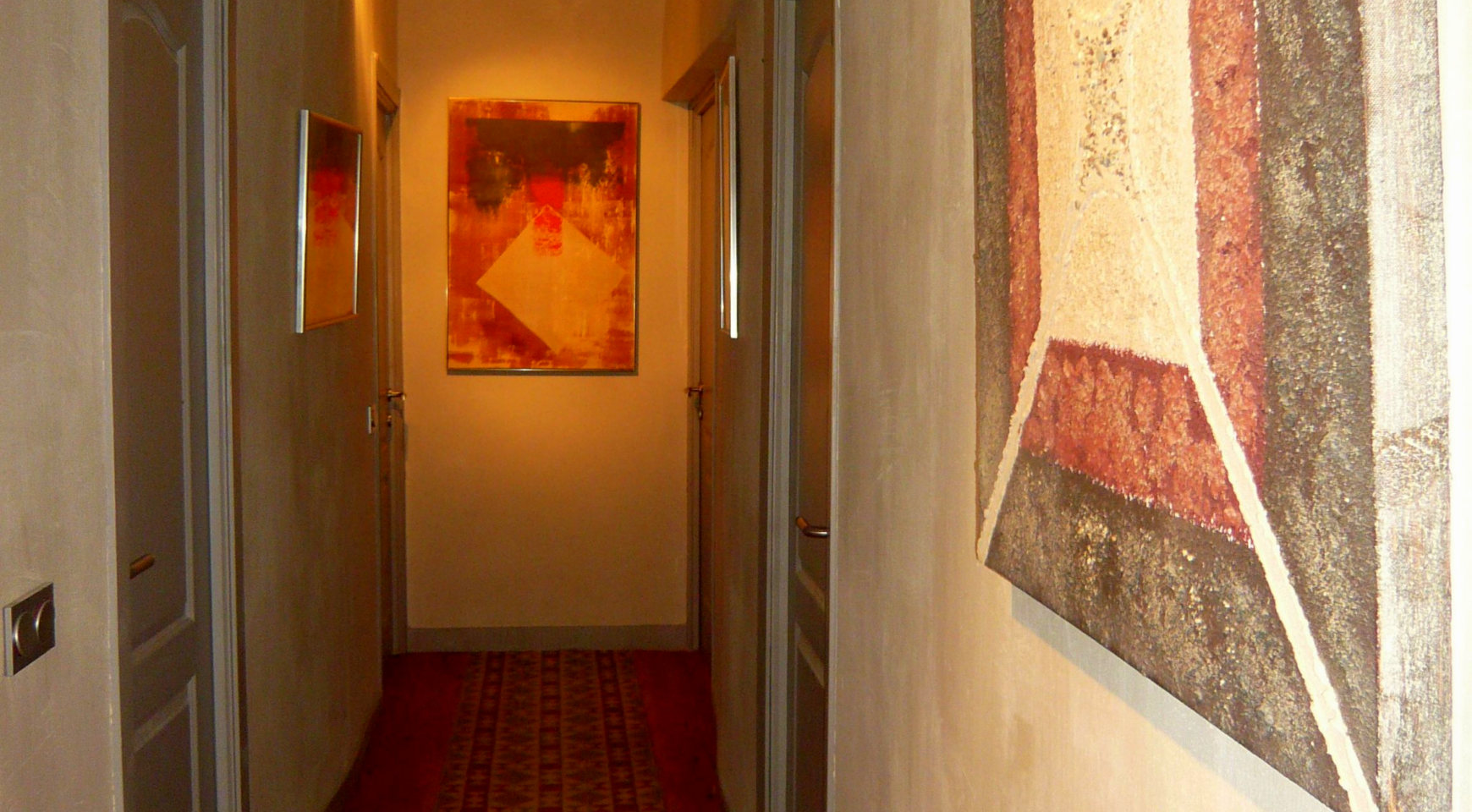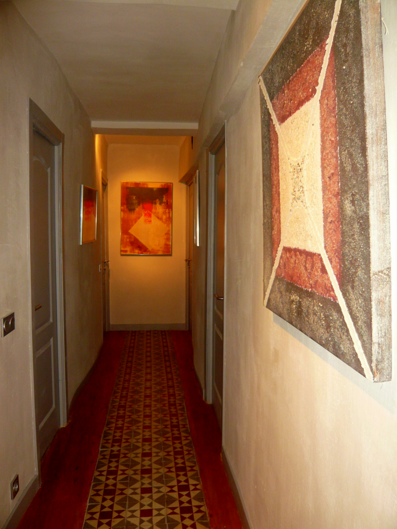 Op de eerste verdieping verbindt een gang de keuken met eetruimte en drie comfortabele slaapkamers. De trap, nog met de originele tegels, leidt verder naar de tweede verdieping, waar een ruime master bedroom met badkamer en douche wacht, evenals directe toegang tot een bloemrijk dakterras. Op dezelfde verdieping bevinden zich nog een eenpersoonskamer en een grote werkruimte, die eenvoudig kan worden omgevormd tot extra slaapkamer met en-suite badkamer.